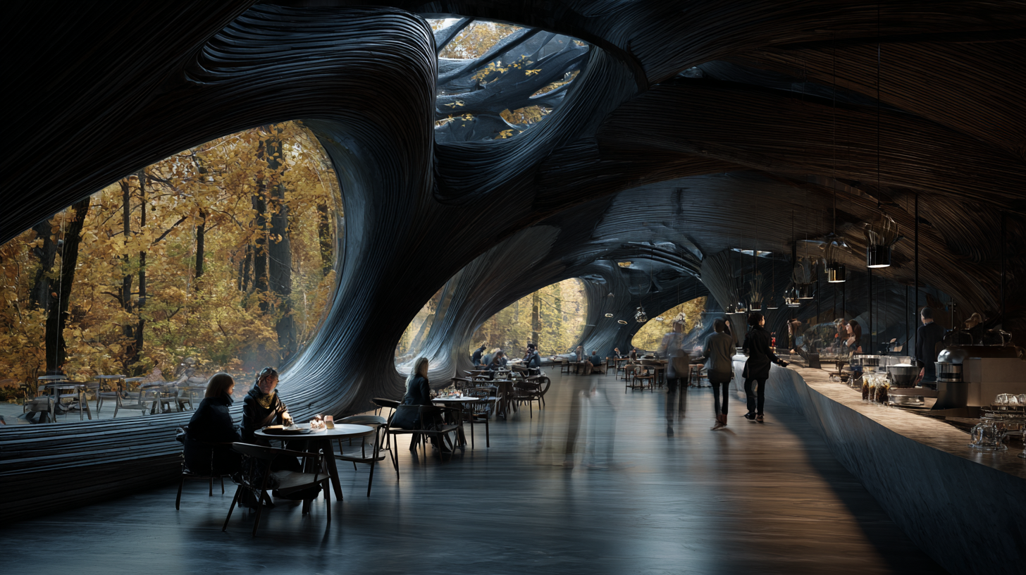Reimagining a futuristic urban café pavilion by blending Art Nouveau style with modern composite materials. (Midjourney + Nano Banana)