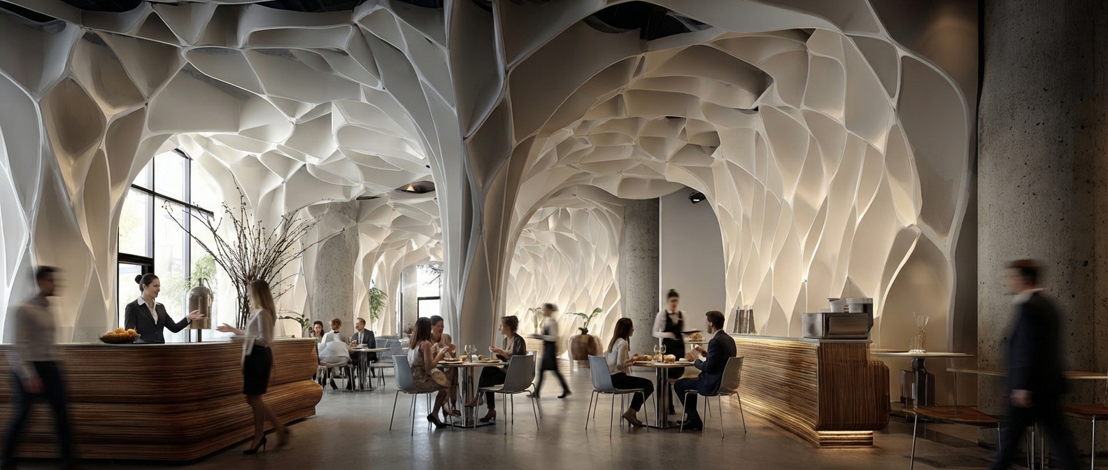 Experimenting with biophilic forms for a restaurant.